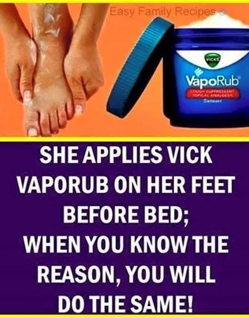 This latest tip involving Vicks Vaporub comes from the holistic and alternative environments of medicine. Some people have decided to apply the famous balm on their feet!